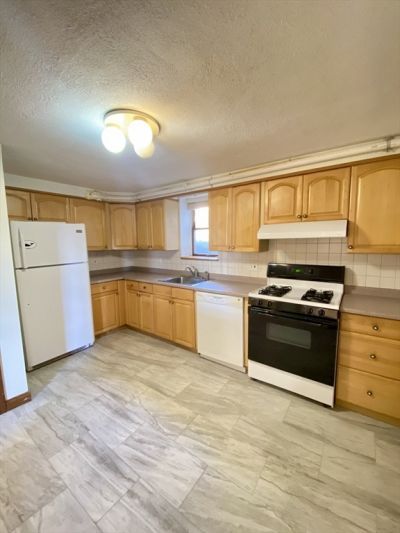 This garden-level three-bedroom, one-bath condo is available May 1st. This unit has been freshly painted, has a brand new bathroom, recessed lights, and upgraded floors. It has hardwood floors, and each room has ample space and good-sized closets. Laundry is in the building, and this property has a decent-sized front and back yard space. Two off-street parking spaces are included in the rent.